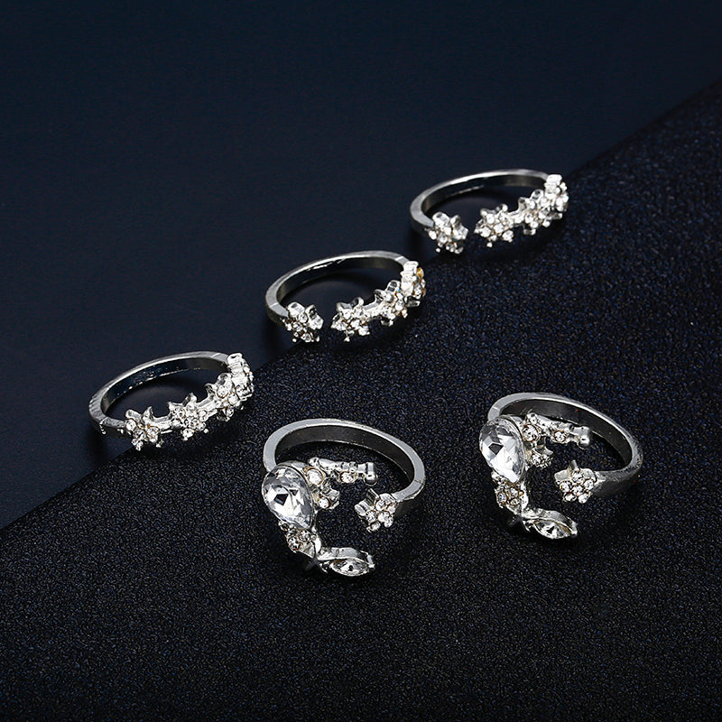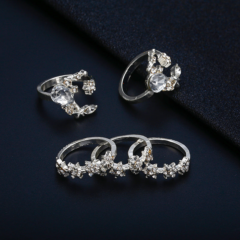 NJ12 5PCS/SET Blue White Crystal Rings Set for Women
