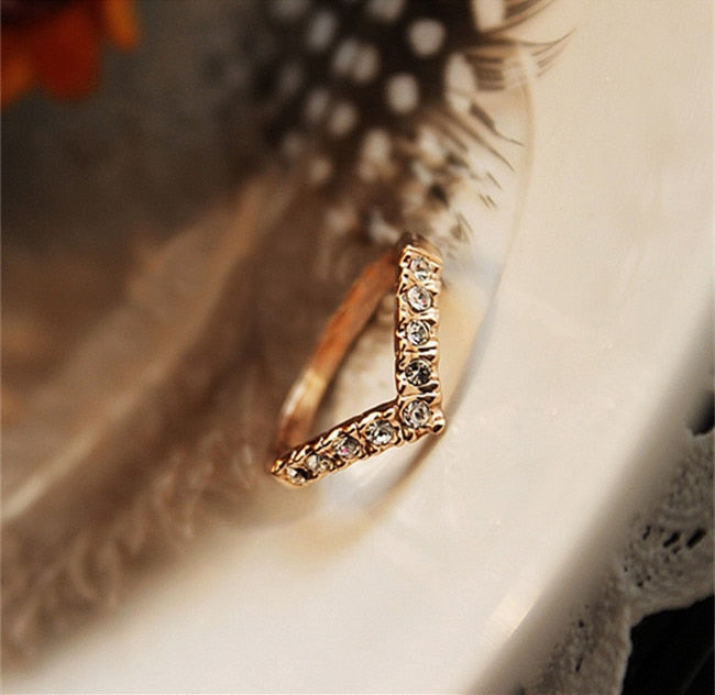 Unique Design Concise Simple Style Rhinestone Crystal V-shaped Tail Ring