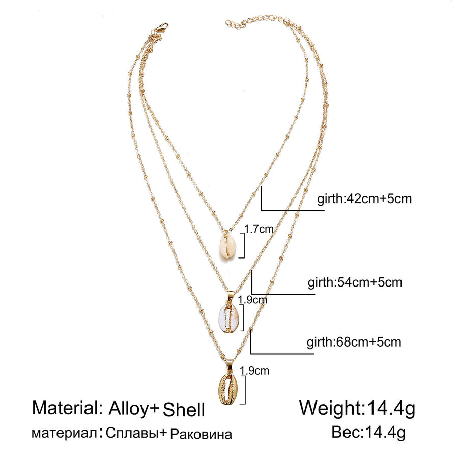 Poputton 3 Multi Layers Natural Shell Pendant Necklace