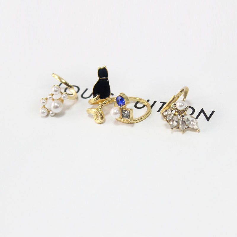 Crystal Black Cat Simulated-Pearl Zircon Nail Rings